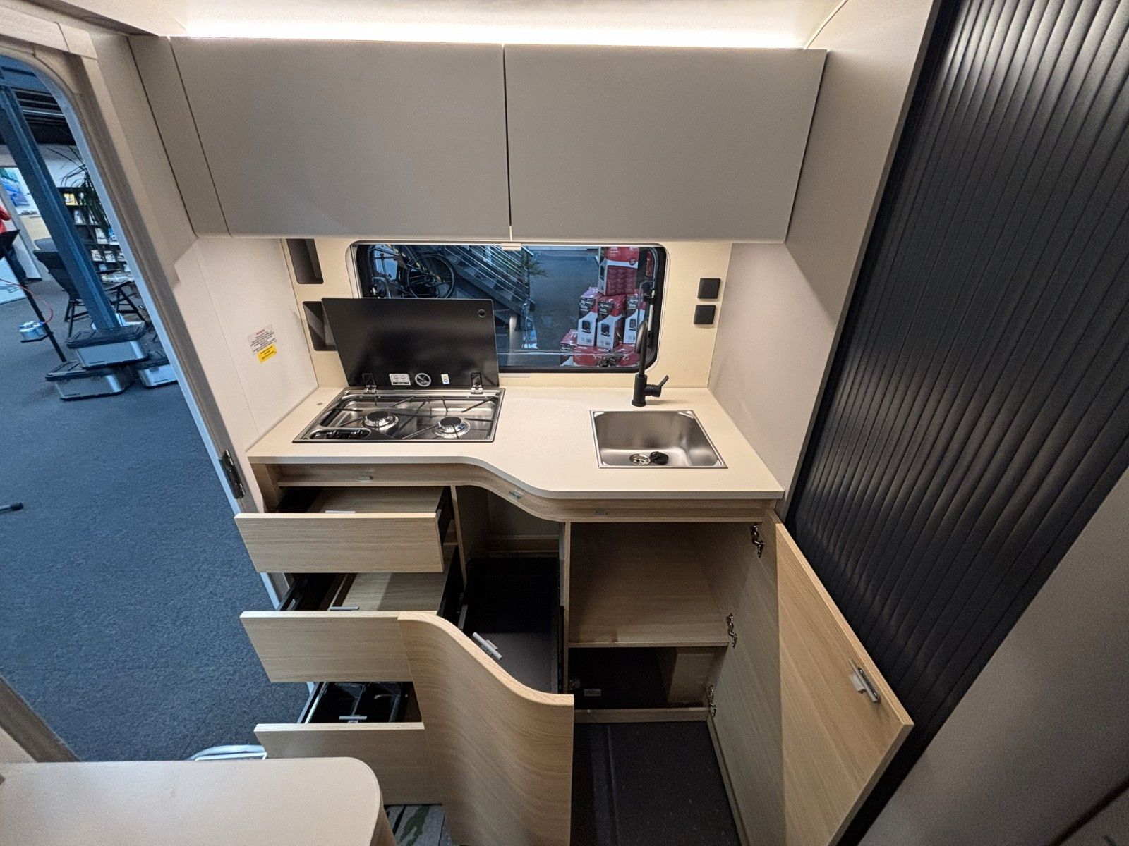 Der Wohnwagen ist sofort verfügbar und in unserer Ausstellung zu besichtigen.