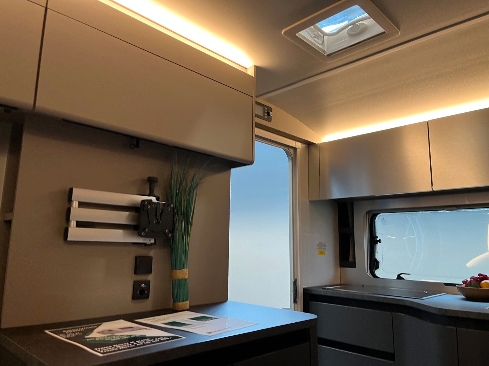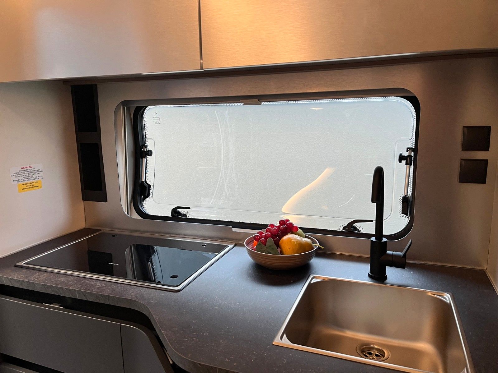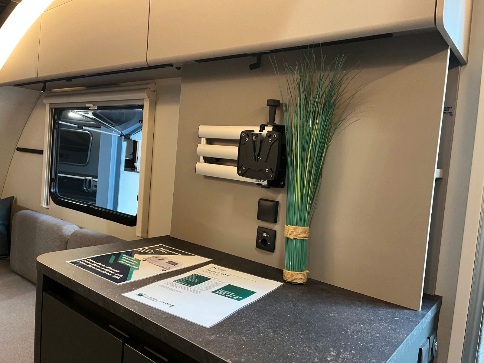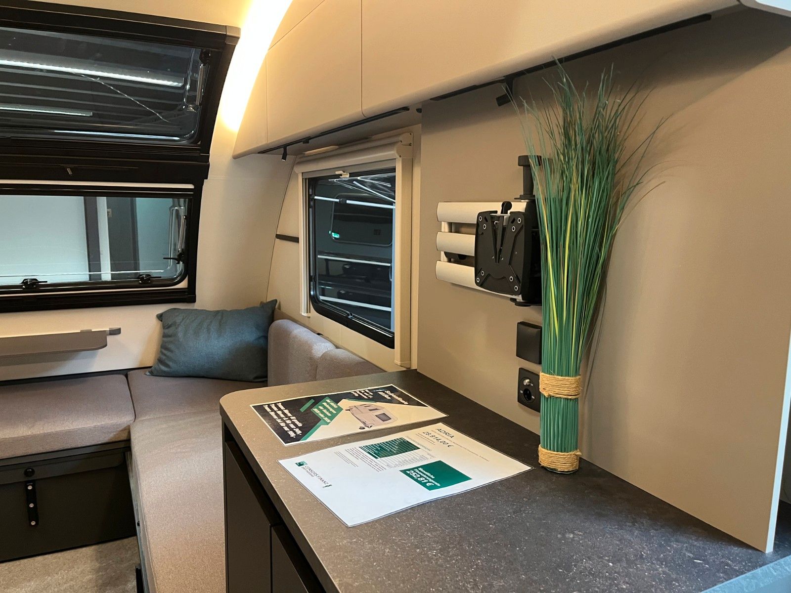 Antischlingerkupplung, Stoßdämpfer, Ersatzrad, AL-Ko Fahrwerk, Frischwassertank 50 L, Abwassertank rollbar 20 L, Wasserablauf zentral, Casetten Toilette mit Spülung, Absorber Kühlschrank 133 L, Warmwasserbereiter Boiler integriert, Eingangstür 2-teilig mit Fliegenschutz oben, Gaskocher 2 Flammen, Bluetooth Soundsystem, TFT Halterung, Kapazität Gaskasten 1x11 Kg, Abdeckung Kocher u. Spüle, Abtropfschale, Panorama Dachfenster Front, Midi Heki.