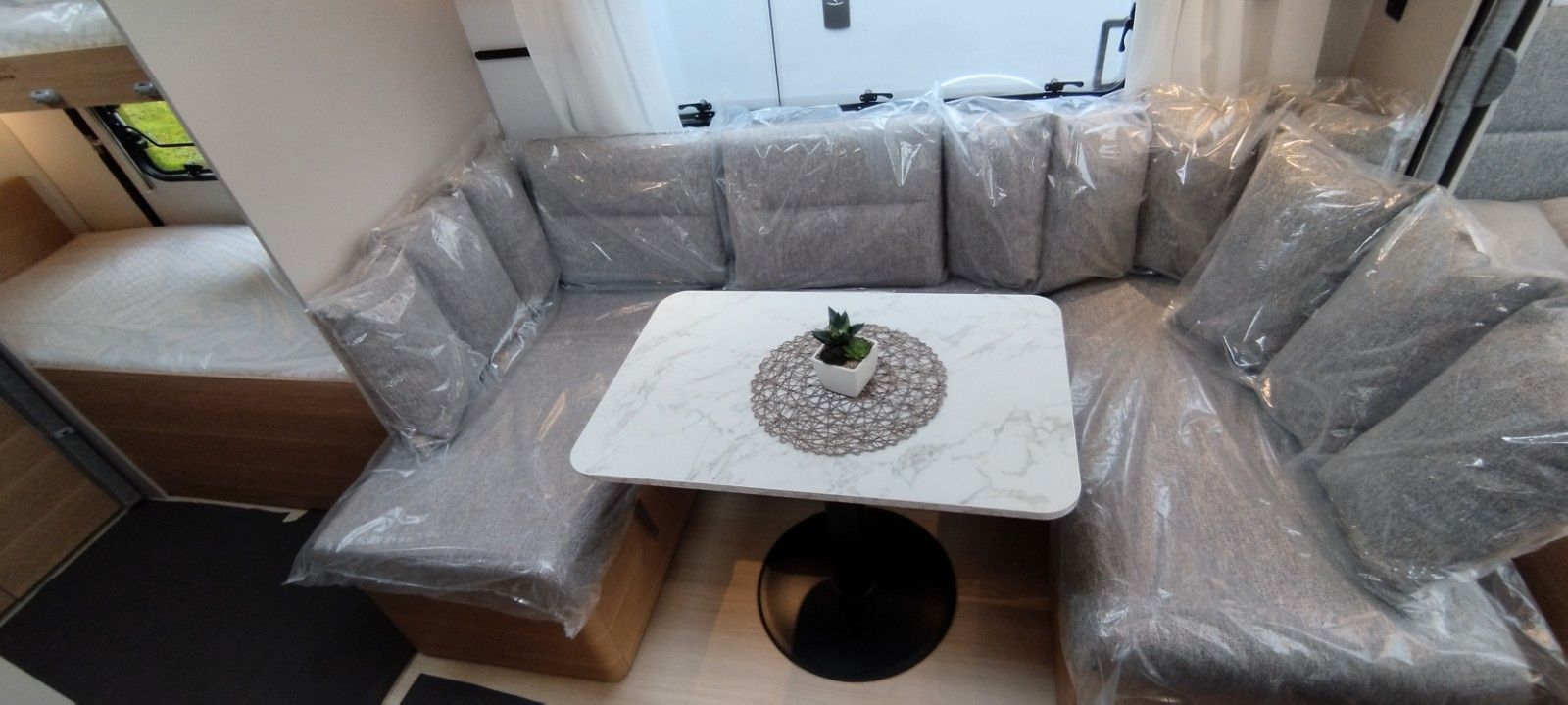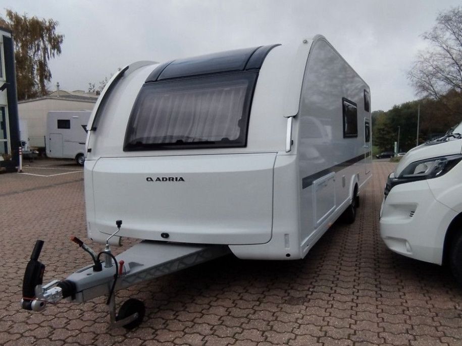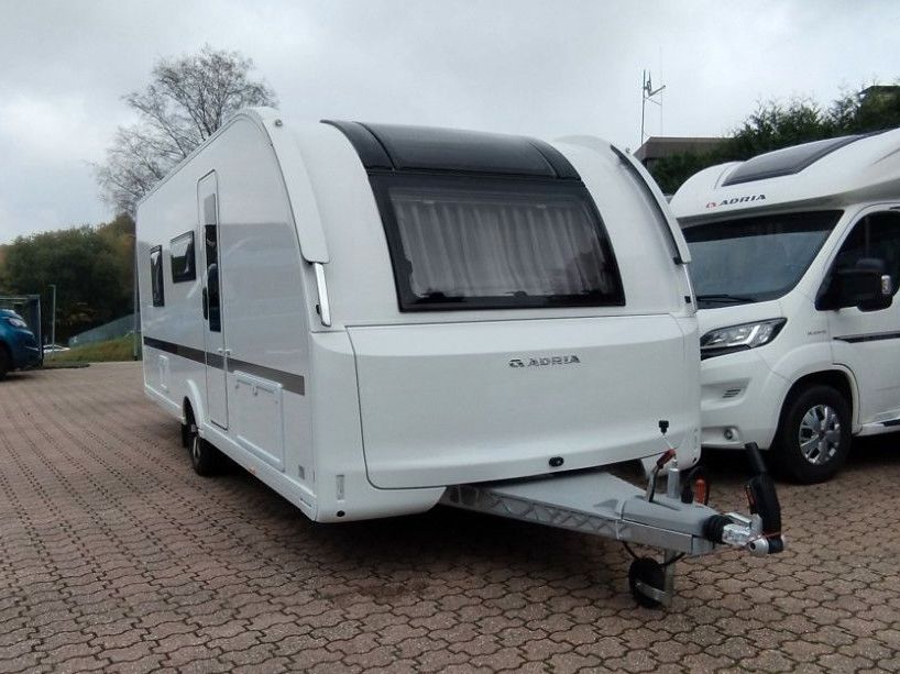 Al-Ko Chassis, Antischlingerkupplung, Stoßdämpfer, ADRIA 15"-Ersatzrad, Ladegerät mit Box für optionale Batterie (Autark-Vorbereitung), TFT Halterung, Frischwassertank (50L), Abwassertank (20L) rollbar, Wasserablass Zentral,Cassetten Toilette, 2x11 Kg Gaskasten, Kompressor Kühlschrank 150L, Gas Kocher (3 Flammen), Dunstabzug, Abdeckung Kocher, Aptropfschale, Combi 4 Gas-Warmluft Heizung Truma inkl. Boiler und Umluftanlage, Eingangstür einteilig mit Fenster und Fliegenschutz, Panorama Dachfenster Front, Midi Heki, Außenstauklappe 2x 95 x 37 cm.