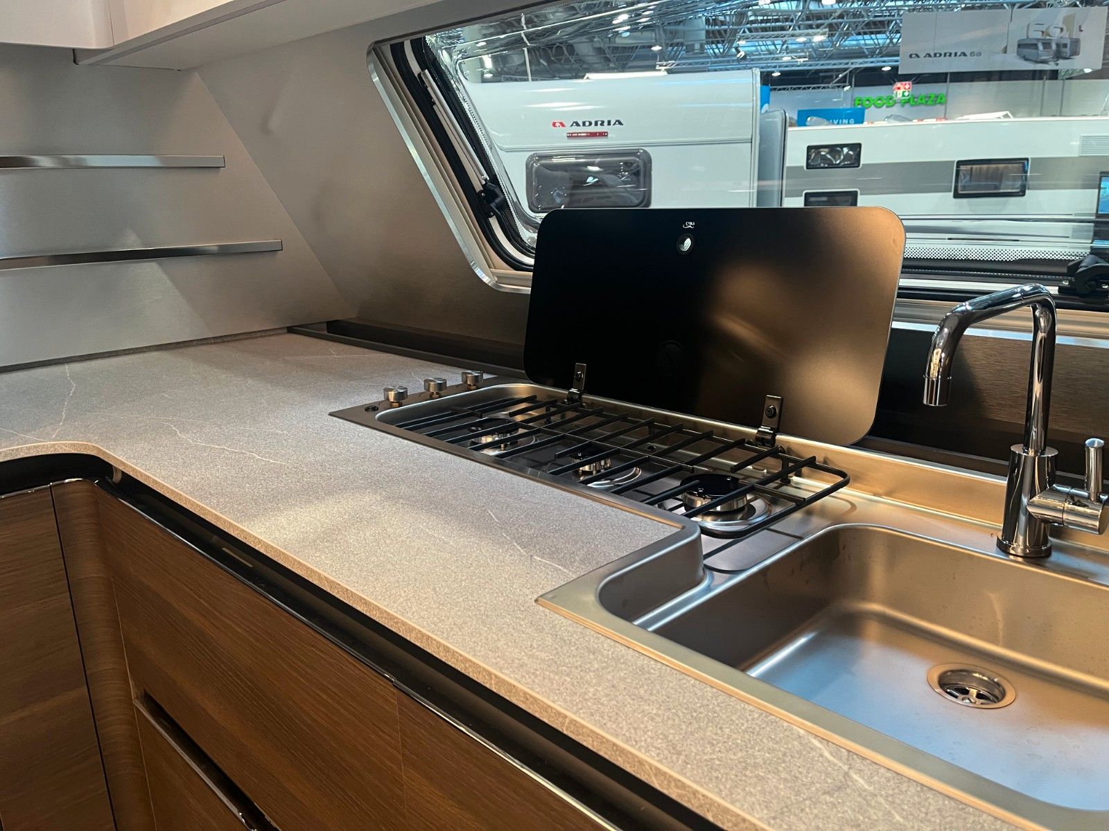 GfK-Außenhaut Ladegerät mit Box für optionale Batterie (Autark Vorbereitung), Adria Mach Plus,Bluetooth-Soundsystem,TFT Halterung, Frischwassertank 50l, Abwassertank beheizbar 40l, Abwassertank rollbar 20l, Cassettentoilette, Kapazität Gaskasten 2x11 Kg, Absorber Kühlschrank Gas/230V 165l,Gaskocher mit 3 Flammen, Dunstabzug, Backofen, Abdeckung Kocher & Spüle, Abtropfschale, Gas-Warmwasser Heizung Alde Compact inkl. Boiler, Warmwasser Fußboden-Heizung Alde, Eingangstür 1Teilig mit Fenster & Fliegenschutz, Panorama Dachfenster Front, Midi Heki.
