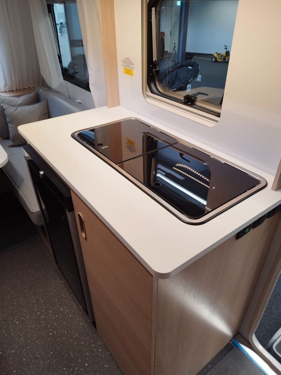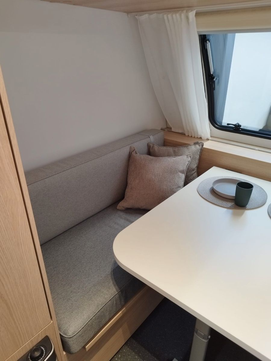 Al-Ko Chassis, Stoßdämüfer, Ersatzrad,Stützrad,Kurbelstützen,Antischlingerkupplung,Frischwassertank 50l, Abwassertank 20l, Wasserablauf zentral, Cassetten Toilette, Kapazität Gaskasten 2x11 Kg, Absorber Kühlschrank Gas/230V 80l,Gas Warmluft Heizung Truma S3004 mit Umluftanlage,Warmwasser Bereiter Truma Therme,Transportbox System Gaskasten, 2 Flammen-Gaskocher, Eingangstür 2-teilig, Polster Silver Ash.