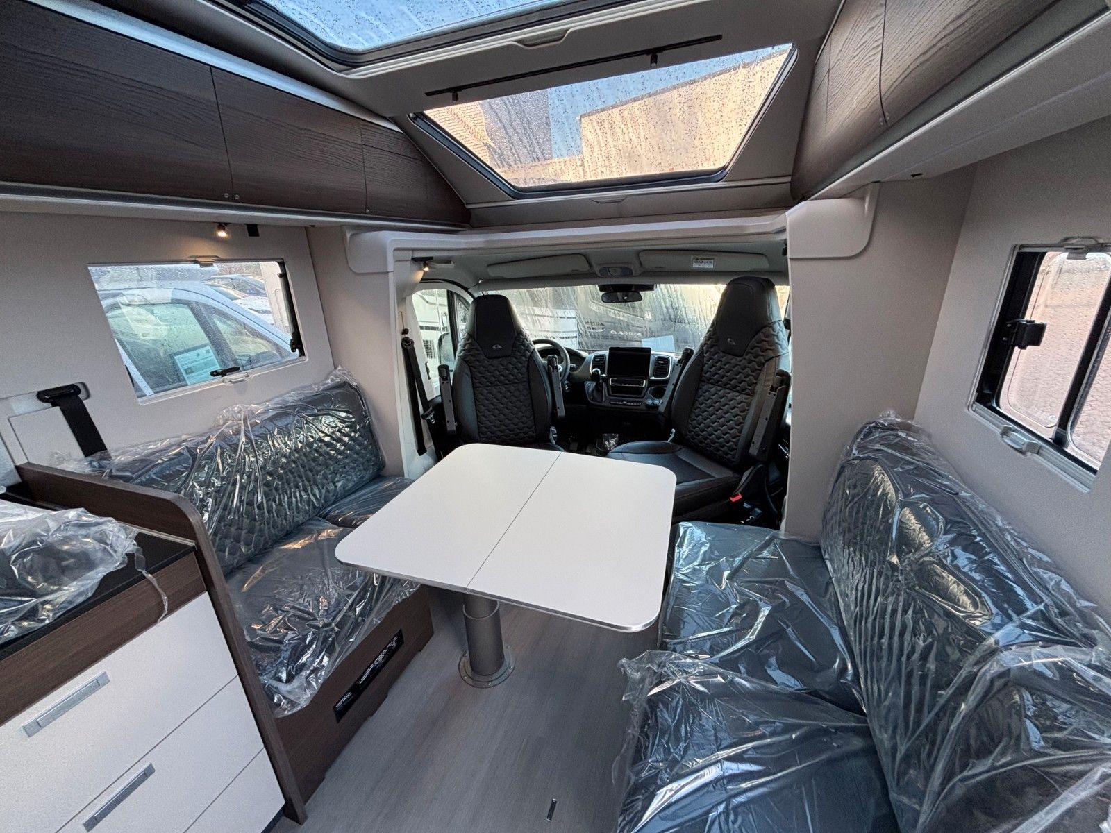Polster Arno, Airbag Fahrer+Beifahrer, ABS,ASR,ESP,EBD,HBA,LAC,MSR, Hillholder, Tagfahrlicht, LED Rücklicht, Klimaanlage Fahrerhaus,Außenspiegel elektr. verstell und beheizbar, Fensterheber FH elektr., Funk Zentralverriegelung FH, Tempomat, dreh- und höhenverstellbare Komfort FH Sitze mit Armlehnen im Wohnraumdesign, Getriebe Manuell (6+R), Frontantrieb, 16" Räder (bei Automatik Getriebe), Reifen-Reparatur-Set, Frontstoßfänger lackiert in FH-Farbe, Wohnraumfenster mit Rahmen, Funktions Doppelboden, AGM Wohnraumbatterie 100Ah,Ladestation 230V/12V in Garage, Sicherheits-Gasregler MonoControl CS, Dunstabzug, Abdeckung Kocher, Abtropfschale, Cassetten-Toilette mit elektrischer Spülung.