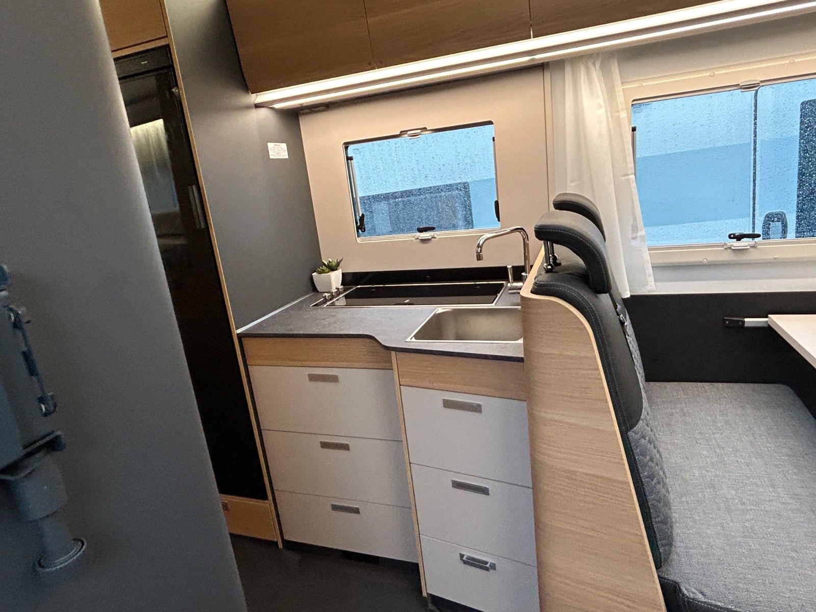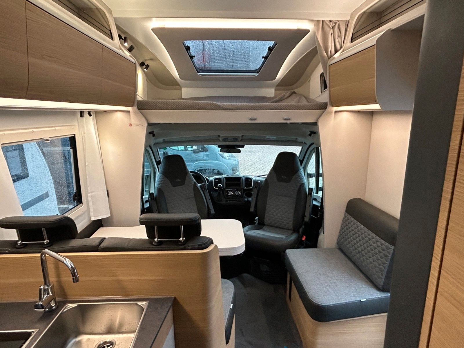 Polster "Arno" Chassis Fiat Ducato mit Tiefrahmen, Airbag Fahrer + Beifahrer, ABS,ASR,ESP, EBD, HBA, LAC, MSR, Hillholder Tracktion+, Tagfahrlicht, LED Rücklicht, Klimaanlage FH, Außenspiegel elektr,. verstell- und beheizbar, Fensterheber FH elektrisch, Funk Zentralverriegelung FH,Tempomat, höhenverstellbare Komfort FH Sitze mit Armlehnen im Wohnraumdesign, Abgasnorm Euro 6e, ECO Pack (Stopp-Start+Lichtmaschine intelligent), Getriebe manuell 6+R, 16" Räder (bei Automatik Getriebe), Reifen Reparatur Set, Frontstoßfänger lackiert in FH Farbe, Wohnraumfenster mit Rahmen, AGM- Wohnraumbatterie 100Ah, Ladestation 230V/12V in Garage, Sicherheits-Gasregler MonoControl CS, Dunstabzug, Abdeckung Kocher + Spüle, Abtropfschale, Cassetten-Toilette mit elektr. Spülung.