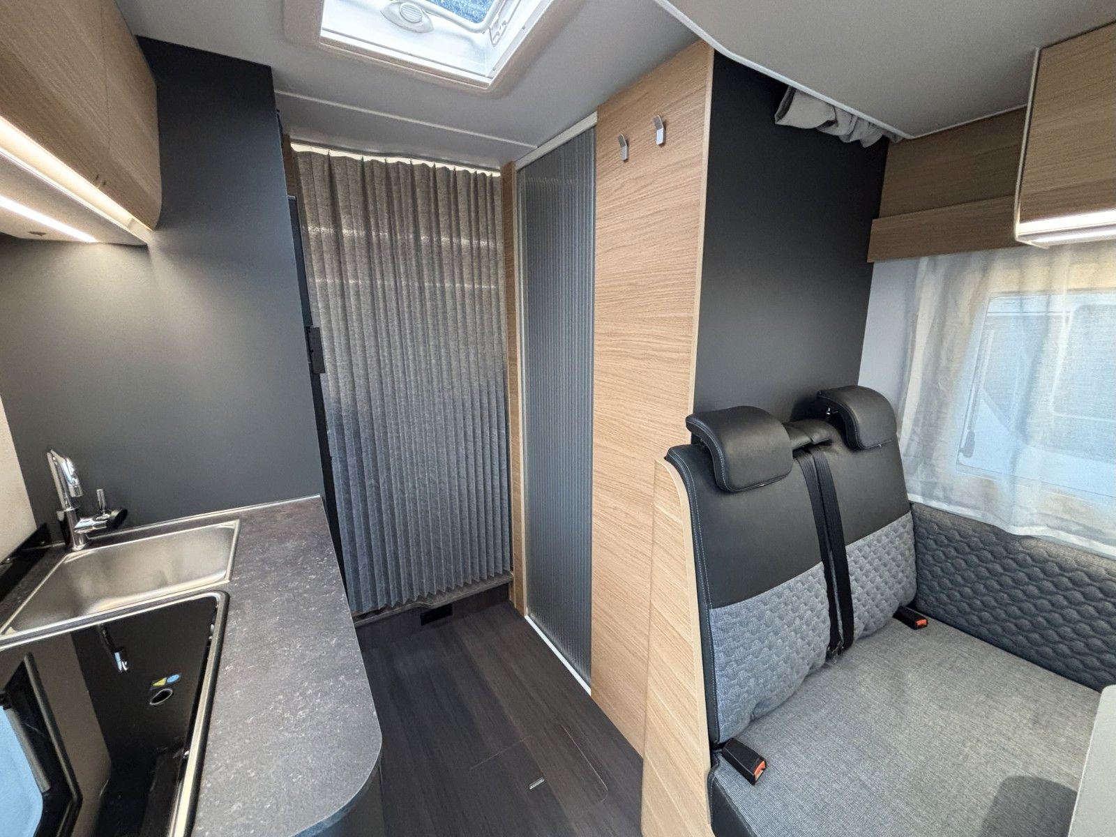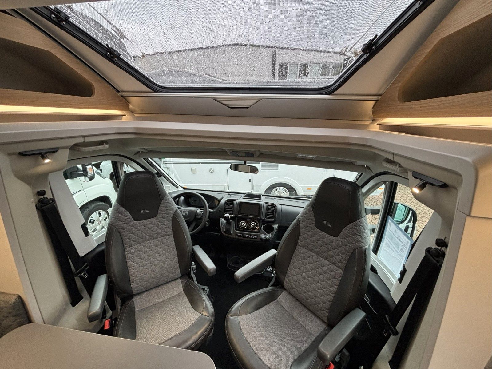 Polster "Arno", Chassis Fiat Ducato mit Tiefrahmen, Airbag Fahrer+Beifahrer, ABS, ASR, ESP, EBD, HBA, LAC, MSR, Hillholder, Traction+, Tagfahrlicht, LED-Rücklicht, Klimaanlage FH, Außenspiegel elek. verstell- und beheizbar, Fensterheber FH elek., Funk-Zentralverriegelung FH, Tempomat, höhenverstellbare Komfort-FH-Sitze mit Armlehnen im Wohnraumdesign, Abgasnorm Euro 6e, ECO-PACK (Stopp-Start + Lichtmaschine intelligent), Getriebe manuell (6+R), 16"-Räder (bei Automalik-Getriebe), Reifen-Reparatur-Set, Frontstoßfänger lackiert in FH-Farbe, Wohnraumfenster mit Rahmen, AGM-Wohnraumbatterie 100Ah, Ladestation 230V / 12V in Garage, Sicherheits-Gasregler MonoControl CS, Dunstabzug, Abdeckung Kocher + Spüle, Abtropfschale, Cassetten-Toilette mit elektrischer Spülung.