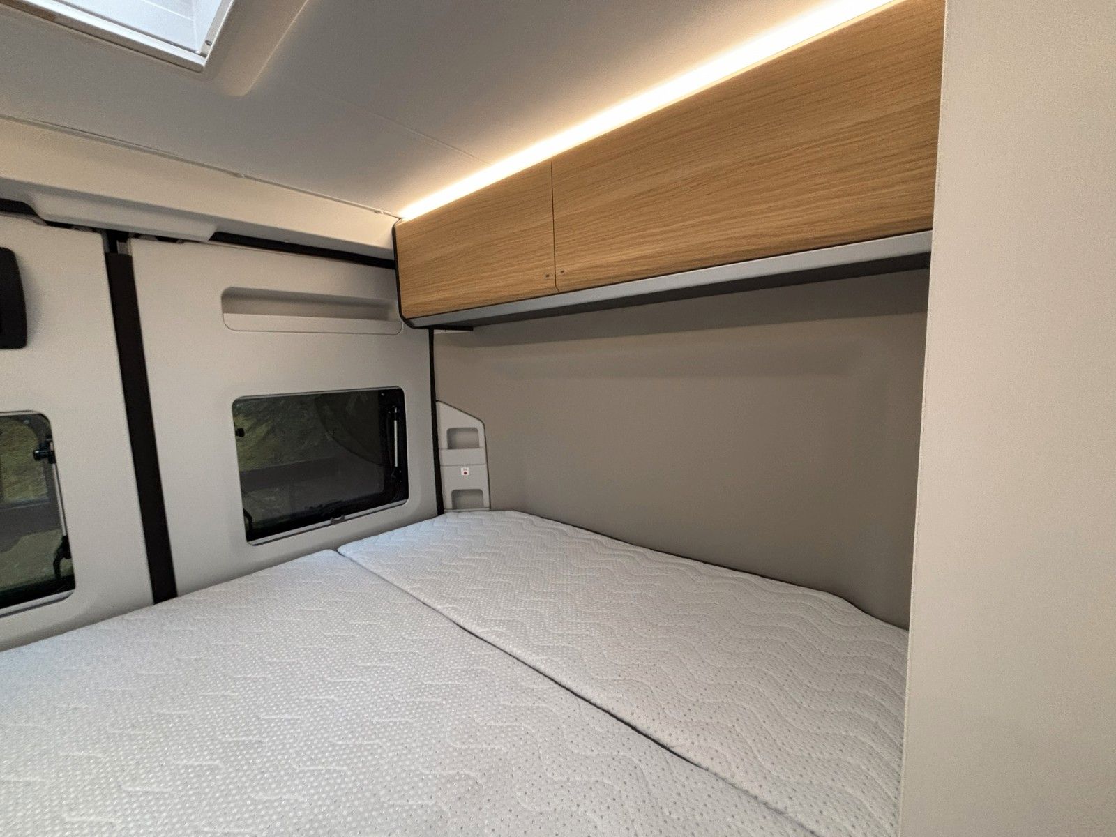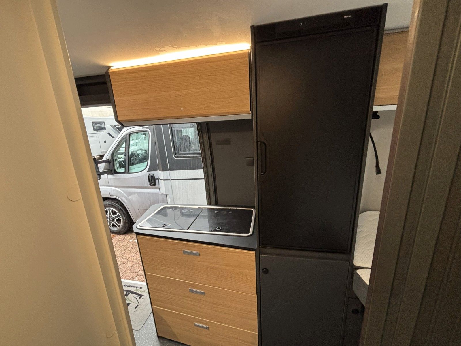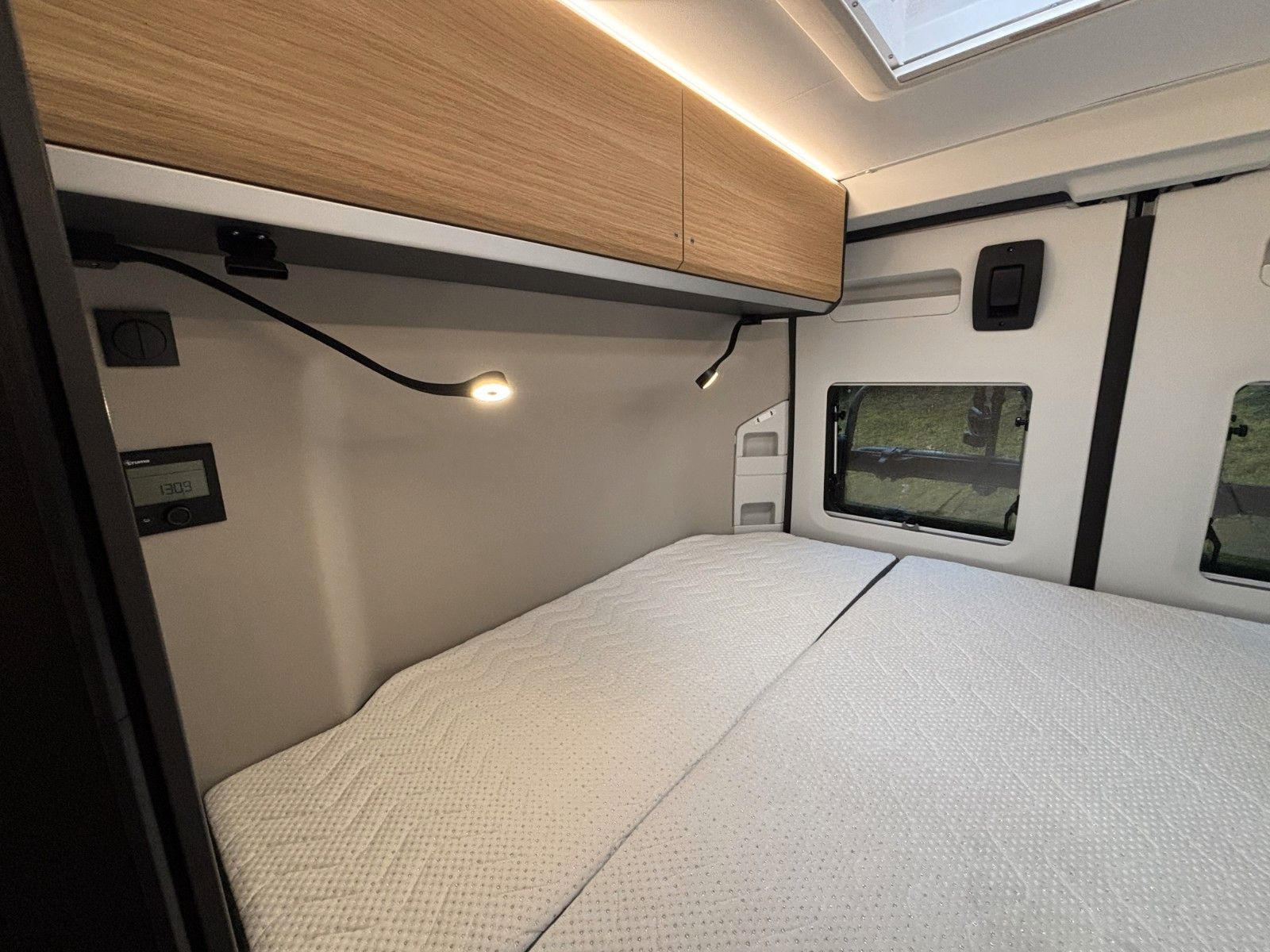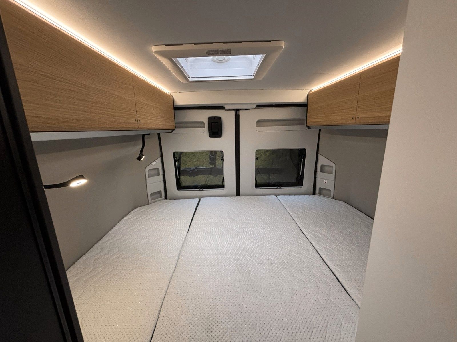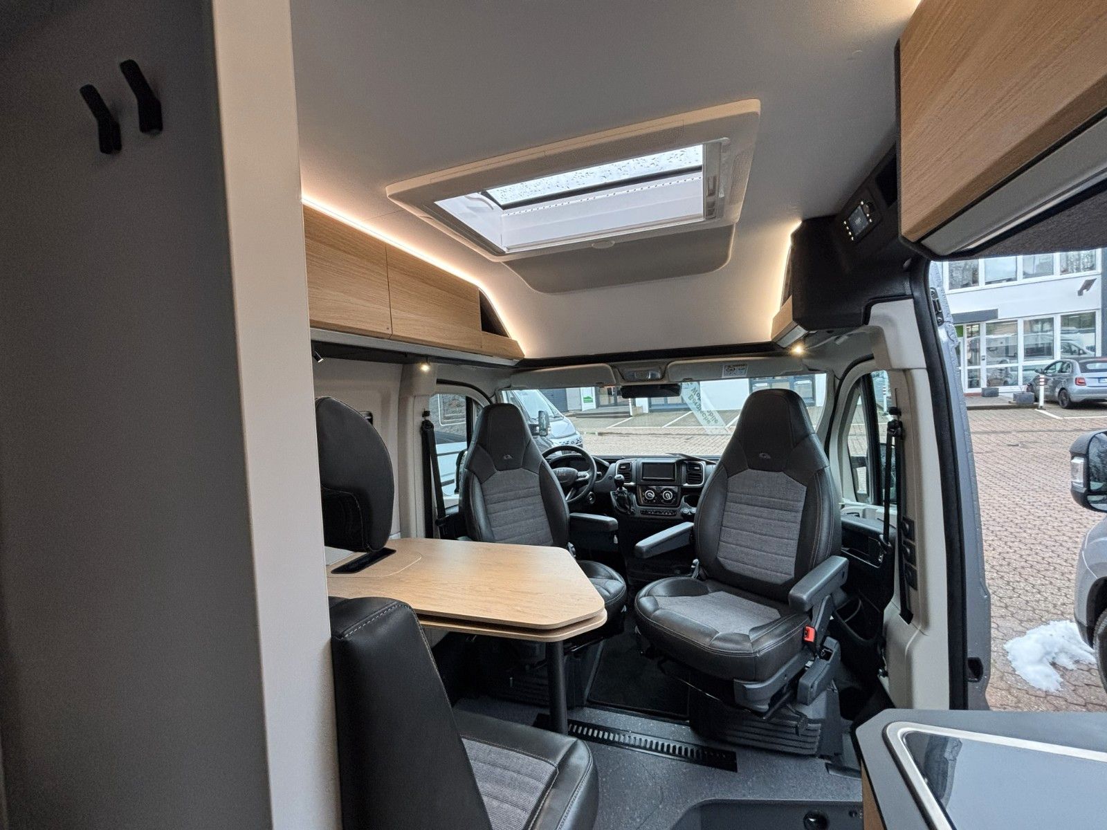 Optionen aus Kit de Luxe (Einparkhilfe hinten, Radio-Vorbereitung FH, Fahrerhaus und Wohnraumscheiben getönt, Wohnraum Seitenfenster mit Rahmen, Fenster inkl.Rahmen, Fenster inkl. Kombirollo auch in Hecktüre links, Falt-Verdunklung FH, Falt-Verdunklung Wohnraum-Seitenfenster, Fliegenschutz an Schiebetüre, Einstiegsstufe elektr., LED-Ambientebeleuchtung, Lade-Booster, Sicherheitsgasregler Mono-Control CS und Gasfilter, Abwassertank isoliert und beheizbar, Abwasserablassventil elektrisch, Abdeckung Kocher+Spüle, Tisch mit Ausdregerweiterung und Becherhalterunglsofix Kindersitzbefestigung Rückbank, Einparkhilfe hinten, DAB-Radio-Vorbereitung FH, Falt- Verdunkelung FH, Sonnenschutz-Markise, Federkern-Matratze auf Festbett(en), Ladebooster, Solar-Anlage, TFT-Halterung, Gasfilter) Solar-Anlage, Sonnenschutzmarkise