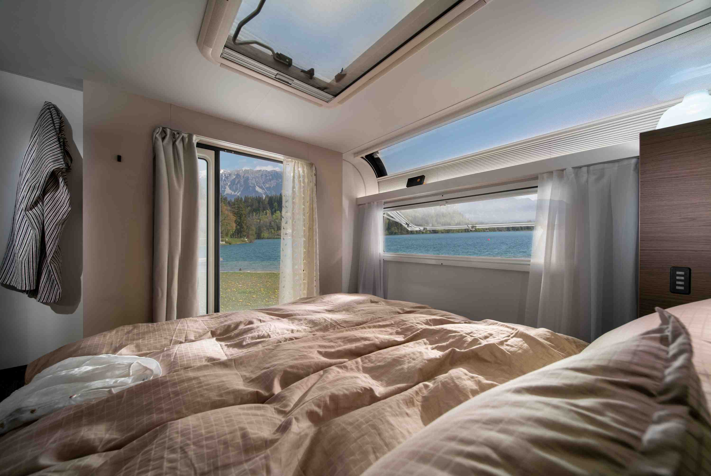 Der Astella 754 DP bietet im Heck ein luxuriöses Schlafzimmer mit Panoramatür und hochwertigen Matratzen. Der großzügige Wohn- und Küchenbereich ist offen gestaltet, lichtdurchflutet und verbindet Funktionalität mit Eleganz.