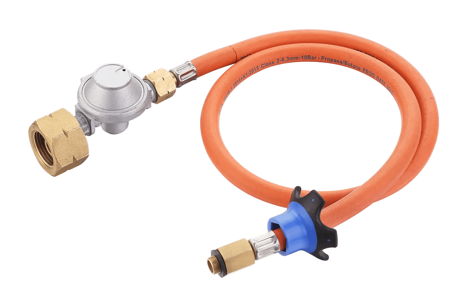 Das Set beinhaltet einen 85 cm langen Gasschlauch, der mit einem Handrad ausgestattet ist, um das Lösen und Anziehen des Schlauches zu erleichtern. So wird die Installation und der Wechsel der Gasflasche vereinfacht.