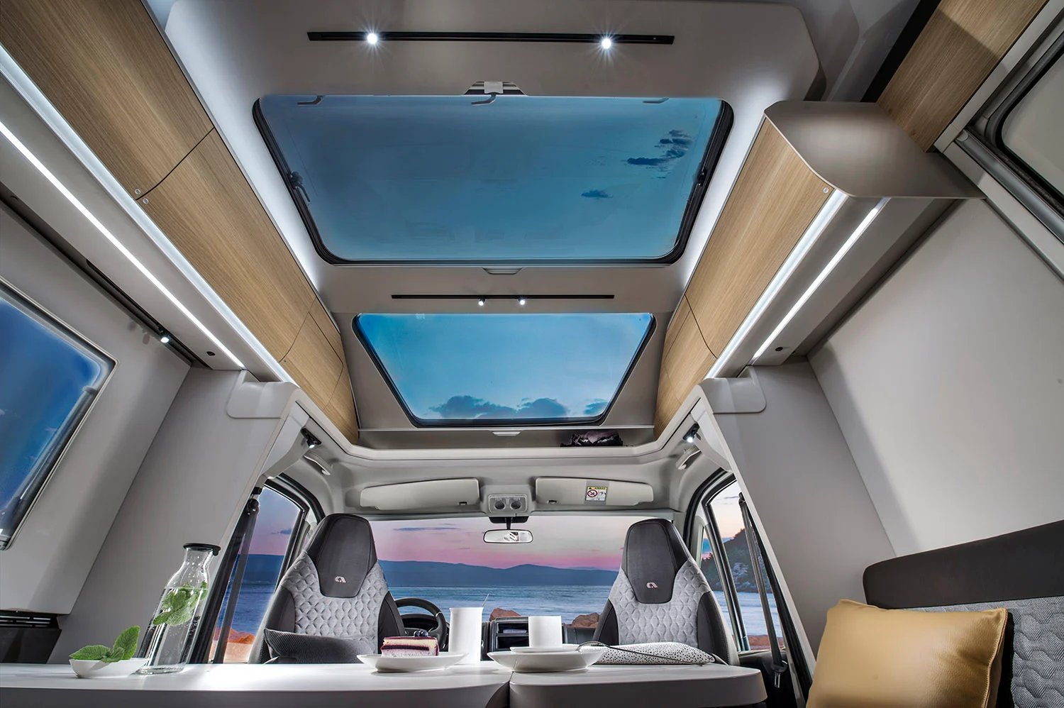 Das Plus Modell der Baureihe Coral hat für die Saison 2025 ein neues Außen- und Innendesign bekommen. Einer der neuen charakteristischen Merkmale: der Doppelboden. Er bietet eine durchgehende Ebene und 13cm Platz unter dem Fußboden, für integrierte Versorgungseinrichtungen, Isolierung zusätzlichen Stauraum und stufenlosen Komfort im Innenraum.