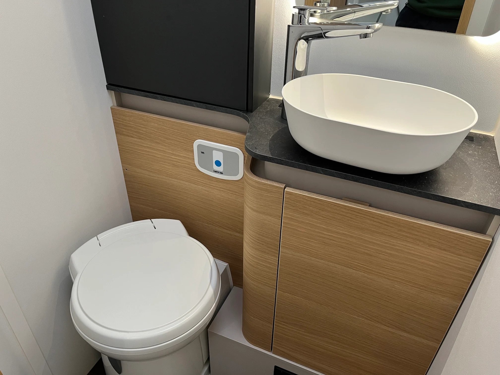 - Stromversorgung: Landversorgung über 230V, Bordversorgung aus 12V Batterie, Freistehen möglich